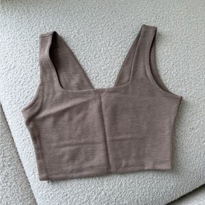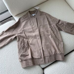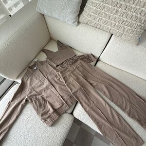 Casual tan jacket, tank and pants with a sleek design. Ideal for everyday wear.