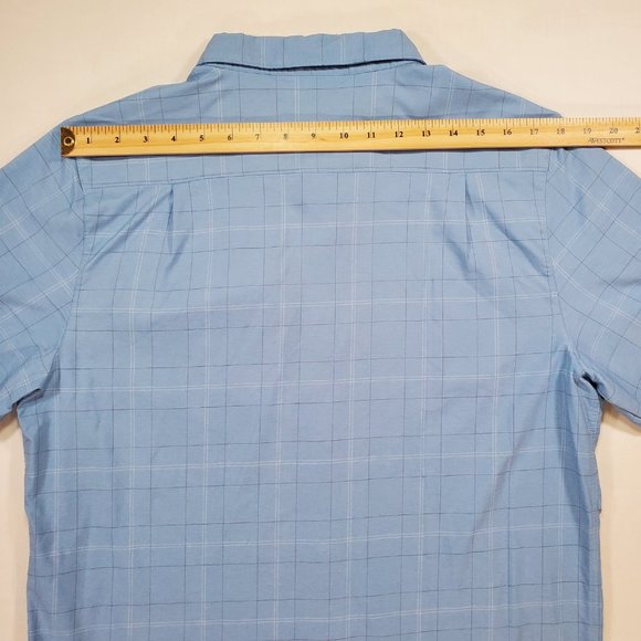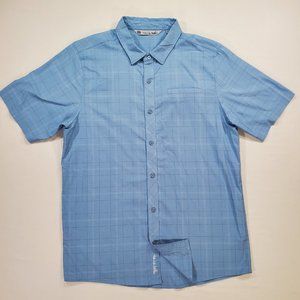 Travis Mathew Shirt Mens XL Blue Windowpane Plaid Performance Button Up Golf