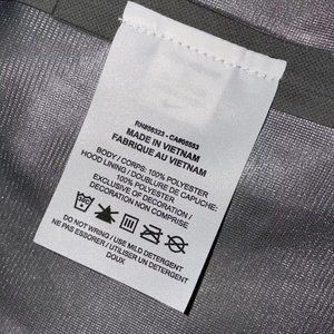 - Bungee-style drawstring at hood and hem