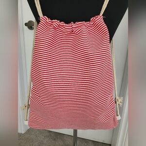 Trïbe Canvas & Rattan Nautical Red & White Striped Drawstring Backpack …