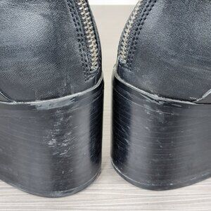 These boots are in good condition. There is some scuffing on the insides and at the block heel.