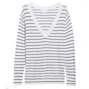 Treasure & Bond Slouchy V-Neck Sweater Style #TB375718MI Color WHITE LITTLE STRIPE