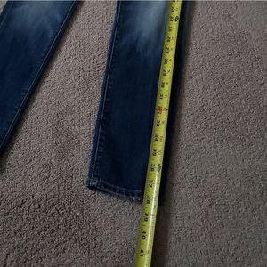 A rich dark blue wash and clean, minimal styling keep the focus on the streamlined silhouette of these stylish skinny jeans. A hint of stretch offers a comfortable, contour-defining fit that will move with you throughout the day. 30" inseam; 11" leg opening; 9" front rise; 13" back rise (size 29) - Zip fly with button closure - Five-pocket style