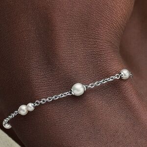 Treated Freshwater Cultured Pearl Station Chain Bracelet Sterling Silver Pandora