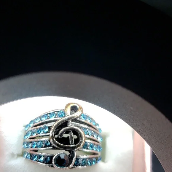 treble ring, silver plated. blue stones. size 6