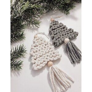 Tree Ornaments Christmas Tree Decoration White and Green Handmade Macrame