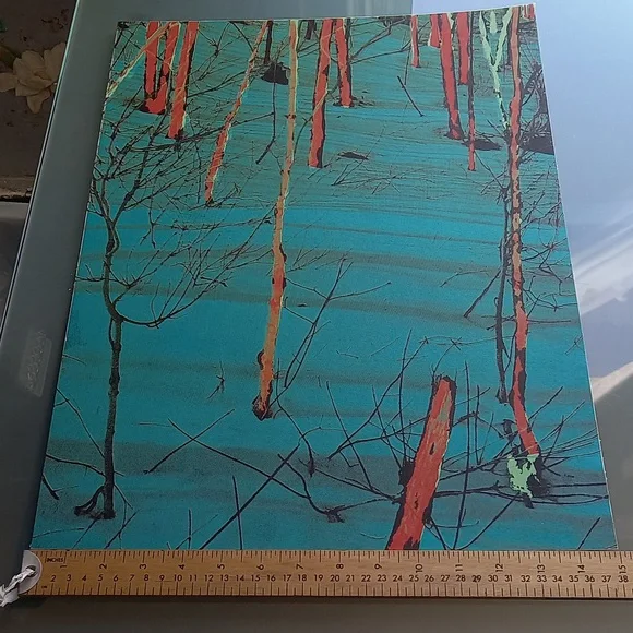 Tree print with vibrant colors purchased at an Estate sale some time ago. I am not sure what type of print this is. The paper is light weight. There is no signature.