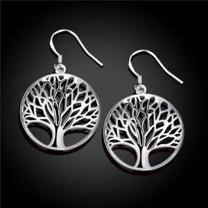 *Tree of Life Earrings Made of Silver Plated White Copper alloy;Length:3.9cm; Width:2.4cm; Weight: 5.6 g; Comes with a Jewelry Pouch.
