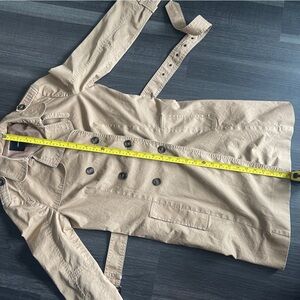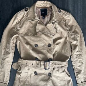Trench coat with tortoise brown buttons. Forever 21 brand. Size US S. True to size; see all photos for measurements. Light brownish beige colour. In excellent condition; only worn a handful of times. No holes, rips, or stains. Comes with removable belt. Perfect for spring and summer!