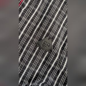 Elevate your casual wardrobe with this stylish black and white plaid button down shirt. Perfect for any relaxed occasion. On excellent condition.