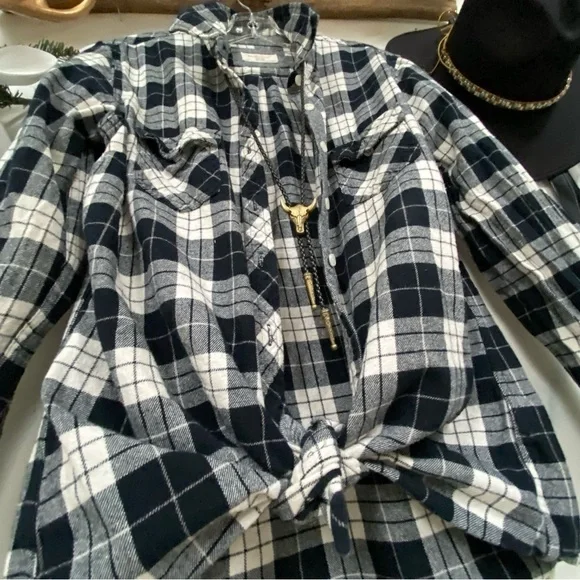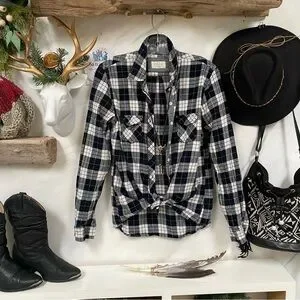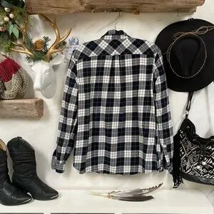 Trendy plaid flannel shirt w cabin cottage core resort country vibe