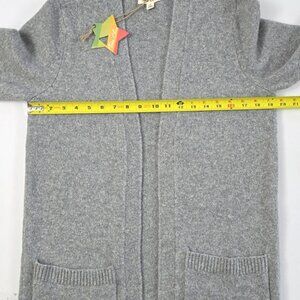 New with tags, Tres Chic women's long length grey wool blend open front long length knit cardigan with two front patch pockets, size Small.
