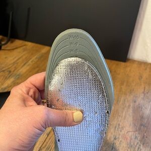 Bottes de pluie en caoutchouc noir au look épuré de la marque Tretorn. Style Chelsea avec empiècements élastiques et languettes pour un enfilage facile. Semelle extérieure crantée, idéale pour les surfaces mouillées. Semelles intérieures amovibles incluses (usure visible). Étiquette de taille absente – se référer à la photo de la semelle intérieure (indication W7) pour l’estimation de la pointure. Bon état général, quelques marques superficielles.