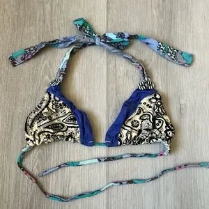 Triangle String Tie Bikini Top Reversible Patterned Multiple Colors Size Small