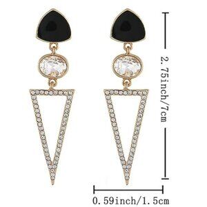 Triangle Drop Dangle Earrings 925 Silver Needle Geometric Crystal Long Tassel