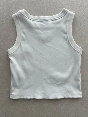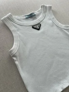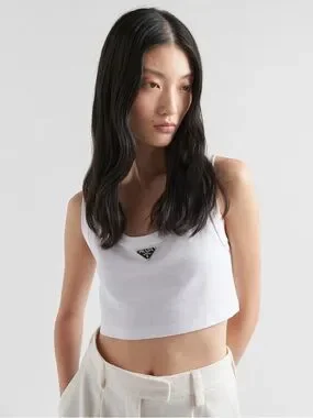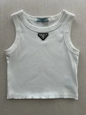 Triangle Logo Ribbed White Cotton Cropped Tank Top