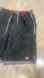 - *Details:* Black shorts with red stitching and gray drawstring and accents.