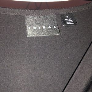Tribal Black Top with Rushed Detail in Front. Fabric shows no wear and is perfect for travelling as it does not wrinkle.