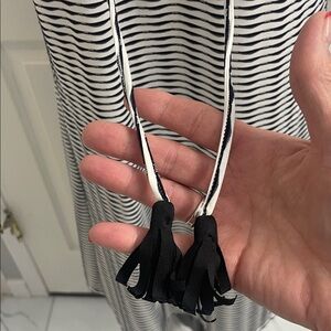 Tribal Black & White Striped Dress V Neck with Ties Sleeveless Pockets Sz S