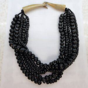 Village Artisans Tribal Bone Closure and dyed bead necklace. Natural Bone with dyed beads. Fair Trade Artisans Guild. Just over 22 inches long in total. 5 strands of beads. Statement piece! Great preloved condition.