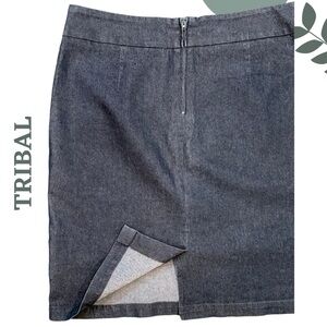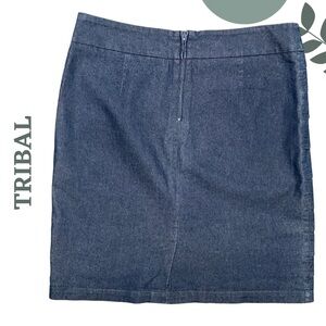 Add effortless edge to your wardrobe with this Tribal denim-look skirt featuring a unique layered panel design. Its textured tiers offer a flattering and dynamic silhouette, perfect for dressing up or down. The cotton blend with added stretch ensures comfort and a great fit. Whether paired with boots, sneakers, or flats, this skirt brings versatile style to any look.