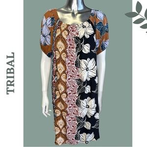 Tribal Dress With Bubble Sleeves Swimsuit Cover Up Black Brown Blue