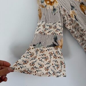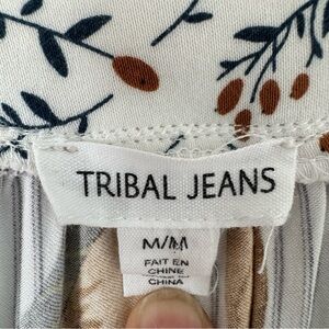 Tribal Jeans Boho Print Long Sleeve Blouse Floral & Stripes VNeck M