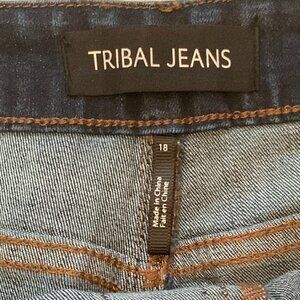 Tribal Jeans Womens 18 Audrey Mid Rise Pull On Slim Capri Blue Denim NWT
