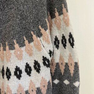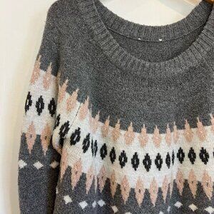 Tribal Jeans Women’s Large Grey Pink Fair Isle Pullover Scoop Neck Sweater