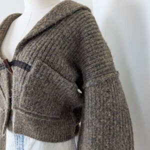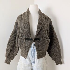 Tribal Knit Cardigan Cropped Long Balloon Sleeve Single Button Closure Collar