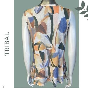 Tribal Knit Sleeveless V Neck Blouse Doinle Peplum Print White Blue Orange