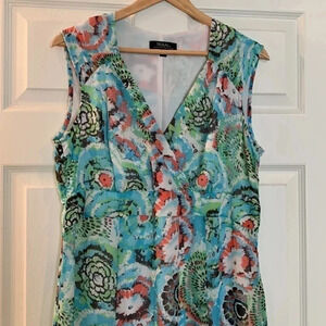 Chic floral midi dress with sleeveless design. Vibrant and stylish for any event.