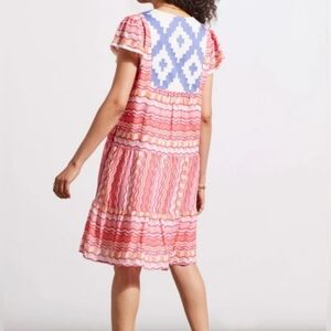 This charming sundress by Tribal features a vibrant pink hue, perfect for casual or resort wear. Designed with a flattering V-neckline and playful cap flutter sleeves, it boasts a tiered mini silhouette that adds a touch of elegance to your warm-weather wardrobe.