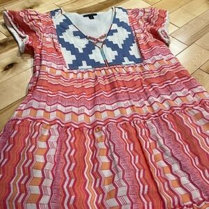 Tribal - Pink Tiered Sundress with Flutter Sleeves - Size Small