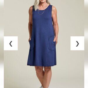 Tribal Reversible A-Line Dress With Pockets- Poolside, white with tropical blues or solid blue, new with tags.