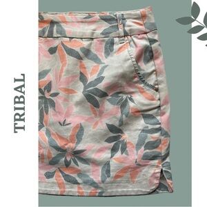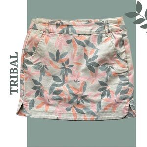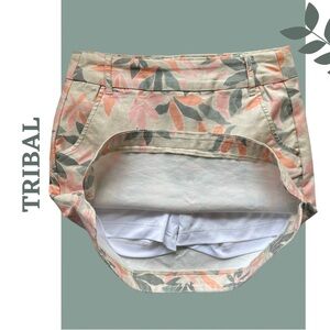 Tribal Spring Summer Skort Floral Pockets Stretch Pull On Orange Cream Size 2