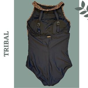 Tribal Standard Halter One-Piece Swimsuit Leopard Print Black Brown Small