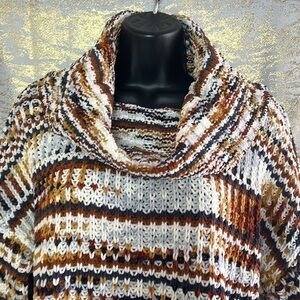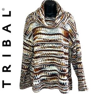 Tribal Tawny Chenille Cowl Neck Knit Sweater Size M