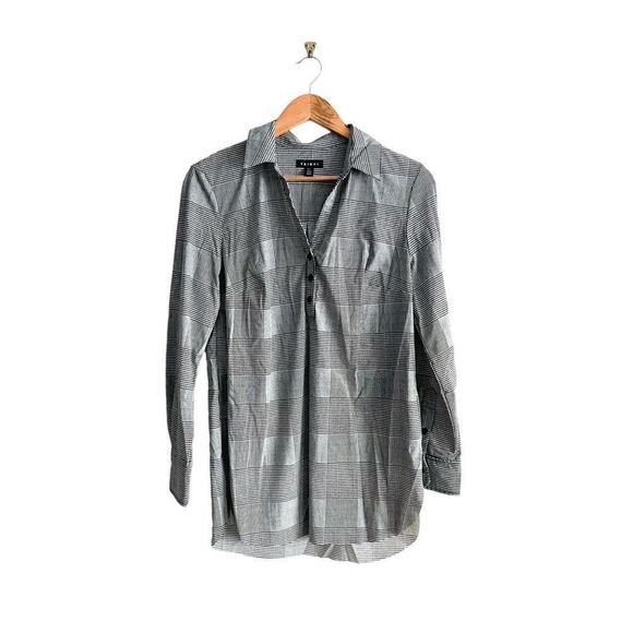 Tribal Tunic Blouse Houndstooth Soft Black White V-Neck Women's S Stretchy