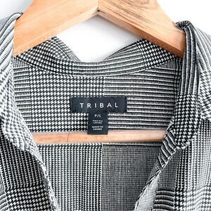 Tribal Tunic Blouse Houndstooth Soft Black White V-Neck Women's S Stretchy. Very good used condition. Please see photos for approximate measurements.