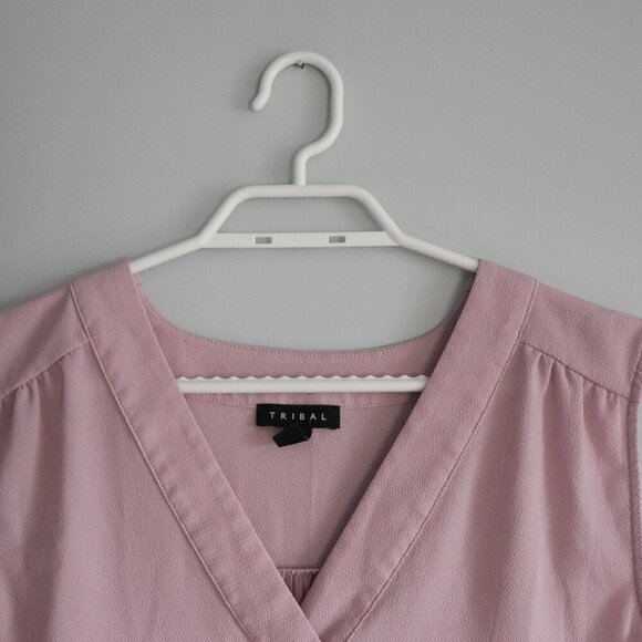 Tribal Women's Sz Lrg Pink V-Neck Casual Lightweight Sleeveless Flowy Tank Top