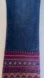 Tribal embellished hem jeans. Pull-on style with faux front pockets and fly. Functional back pockets and front coin pocket. Stretch denim. Beautiful embellished hem with embroidery, sequins sparkle studs and raw hem.