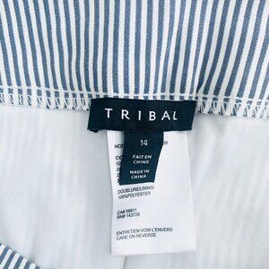 Tribal womens scalloped skort with undershorts, striped with blue grey/white/ sparkle, scalloped hem. Great casual wear, summer skirt.