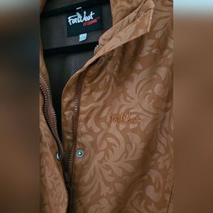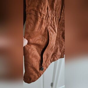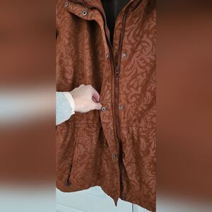 Elegant utility jacket featuring a floral swirl pattern. Ideal for everyday style. no hood, excellent condition