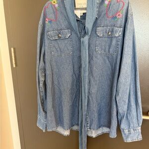 Tricia Fix X Free People NWT reworked/redrafted a”S” but please see measurements- it’s absolutely NOT anything resembling a standard S- however please note- that’s what the tags read.. Amazinh stitching and embroidery- with a film denim neck scarf/tie- ultra rare and fun!!