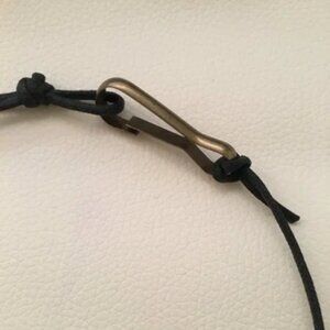 This is a very cool pendant. A leather strand is included, but I recommend a new one. A wide link chain would go perfectly with the theme.