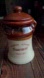 Not sure where it was made, but some of the other similar stonewares that were found with the set say Taiwan and Japan. Lid does not sit amazingly on top (see video). Some pin holes through outer layering of pottery (see photos) - these would be defects from when jar was made. Bottom has some marks and staining. Small chip in bottom lid edge (photo), but again, seems to be original.