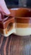 Tricolour / three-tone glaze stoneware pottery wide soup mug with handle and lid