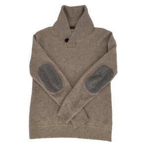 The sophisticated buttoned neckline adds a touch of elegance, while the contrasting gray elbow patches enhance both style and durability, ensuring this sweater stands out in any wardrobe. The classic fit, with a chest measurement of 20 inches across the armpits, a sleeve length of 26 inches, and an overall length of 27 inches, makes it an ideal choice for those who appreciate a tailored look.