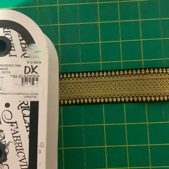 6 yards of 1. 5/8” wide embroidered trim. 100% polyester. Was 12.90 meter